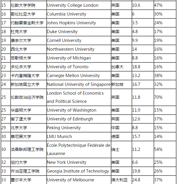 2017年世界大学排名数学与统计学专业