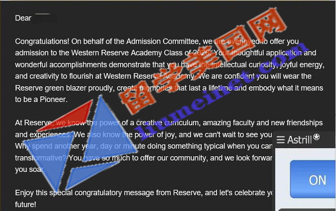 录取捷报!恭喜留美网Z同学录取到美国顶尖寄宿高中西储学院Western Reserve Academy!