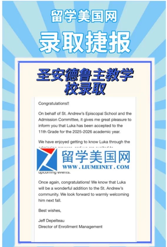 【录取喜报】恭喜留美网学子K同学斩获圣安德鲁主教学校录取offer
