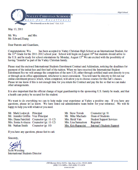 挑战难度:吴同学在江苏苏州一所国际高中的学生,各方面条件都非常优秀,不但学习成绩优异,而且擅长运动,还参加了市运动队等活动。由于学生家长也是美国名牌大学毕业的,所以对孩子选校期望值很高,与留美网签约之前,家长和学生自己申请了N所美国顶尖寄宿高中,但是一直至4月份也没有任何录取结果。在焦虑中,家长毅然决然地选择了留美网。由于美国顶尖寄宿高中申请截止日期都比较早,针对于申请得如此晚的学生而言,我们的顾问很慎重地与在美国的境外团队的老师取得了联系。由于常年良好的合作关系,我们在美国的境外老师积极的与美国一些学校直接联系沟通,最终确保了申请录取率。最终孩子获得加州蓝带高中山谷基督高中和前50的寄宿学校录取,吴学生非常欣喜说,是留美网圆了她留学美国的梦想。最终孩子选择了加州的山谷基督高中。