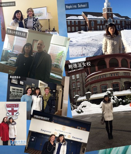 《《右图是留学美国网总监石老师与部分合作高中招生官合影