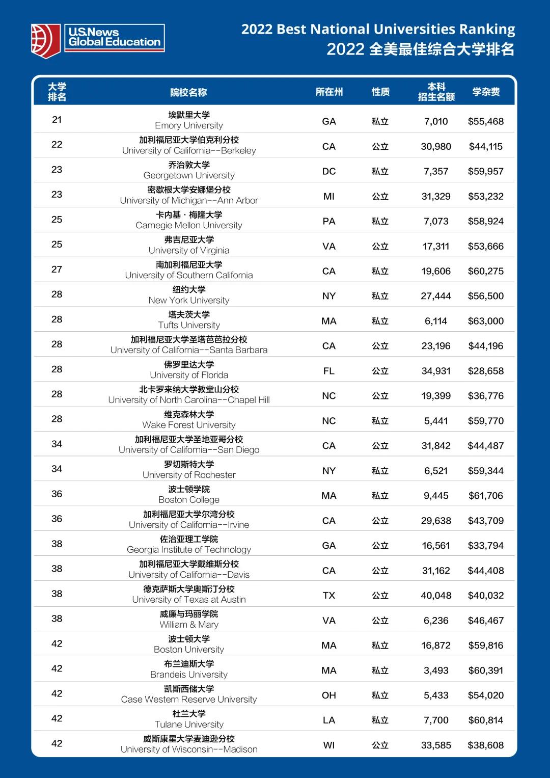美国时间9月13日,世界权威排名机构之一U.S.News&World Report《美国新闻与世界报道》(以下简称U.S.News)官方正式发布了最新的2022年美国大学排名(2022 Best College Rankings)。